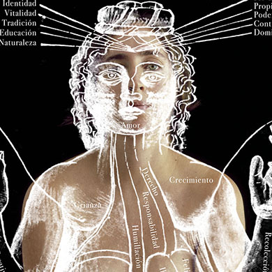 Dibujos geométricos y anatómicos que hablan de la construcción de la figura humana, de las proporciones entre sus partes y de la simetría de su forma. Para confrontar por un lado, estructuras ideológicas, femenino vs. masculino, y por otro, ideales de cánones estéticos.